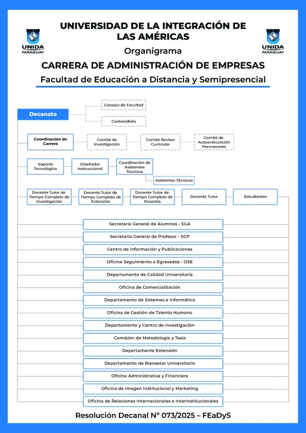 La Carrera de Administración de Empresas de la UNIDA, en la Modalidad a Distancia, ofrece una sólida formación en el ámbito de los negocios, una formación profesional que convierte a los educandos en directivos expertos en gestionar el manejo de las inversiones y las necesidades de financiamiento de la empresa en una economía globalizada.