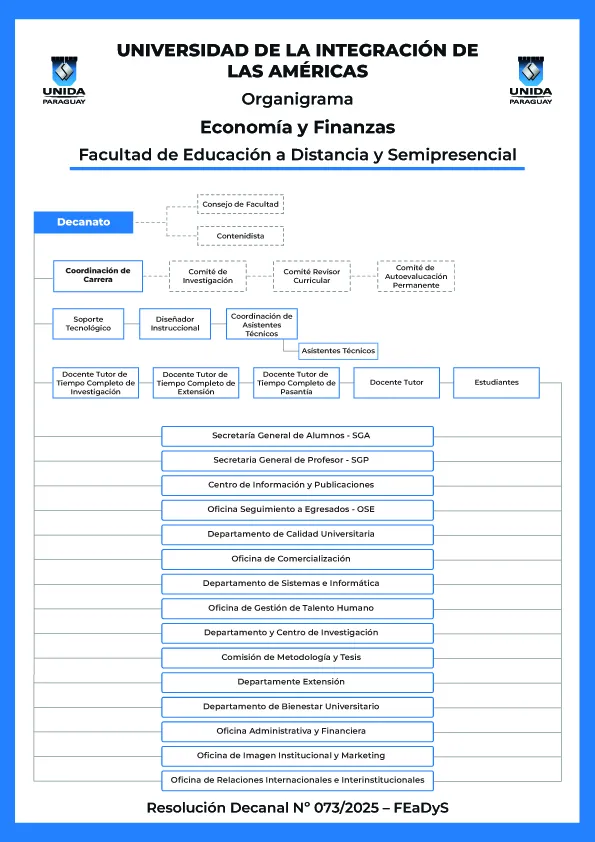 La carrera de Economía y Finanzas de la UNIDA se determina en formar a los mejores profesionales del sector empresarial, capaces de manejarse con amplio conocimiento instrumental y herramientas de análisis micro y macroeconómicos para el diagnóstico y el asesoramiento correspondiente, cumpliendo con las exigencias del mercado económico nacional e internacional en el área financiera.