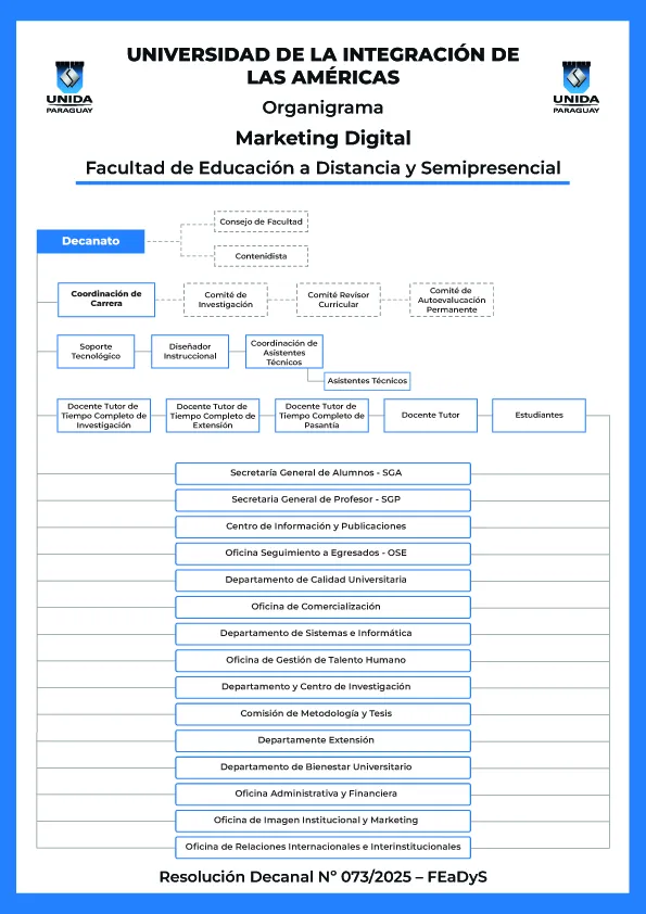 Todo estudiante que desee ingresar a la Carrera de Marketing Digital deberá rendir una Prueba de Entrada, la cual versará sobre temas que comprenden áreas comunes de la Educación Nacional como ser: Historia y Geografía, Comunicación Oral y Escrita, Matemática Básica, Introducción a las TIC y Metodología de Estudio, con el fin de nivelar sus conocimientos básicos dentro del 1° Semestre del año lectivo, así también deberá de presentar las siguientes documentaciones: