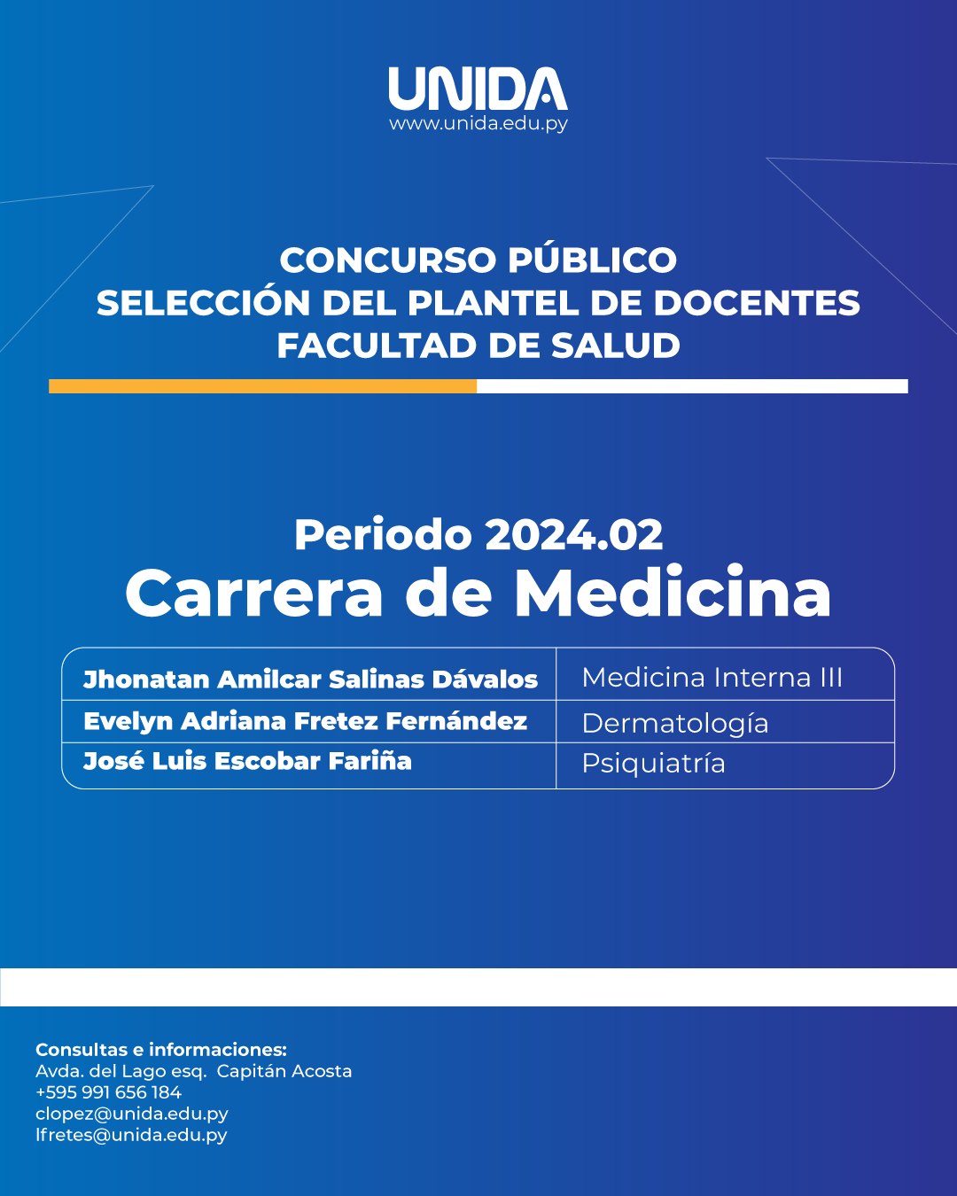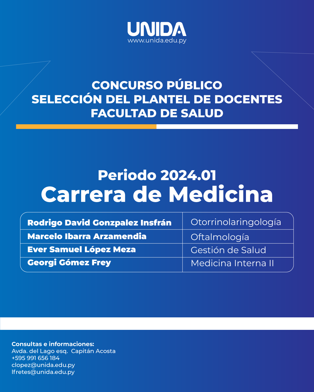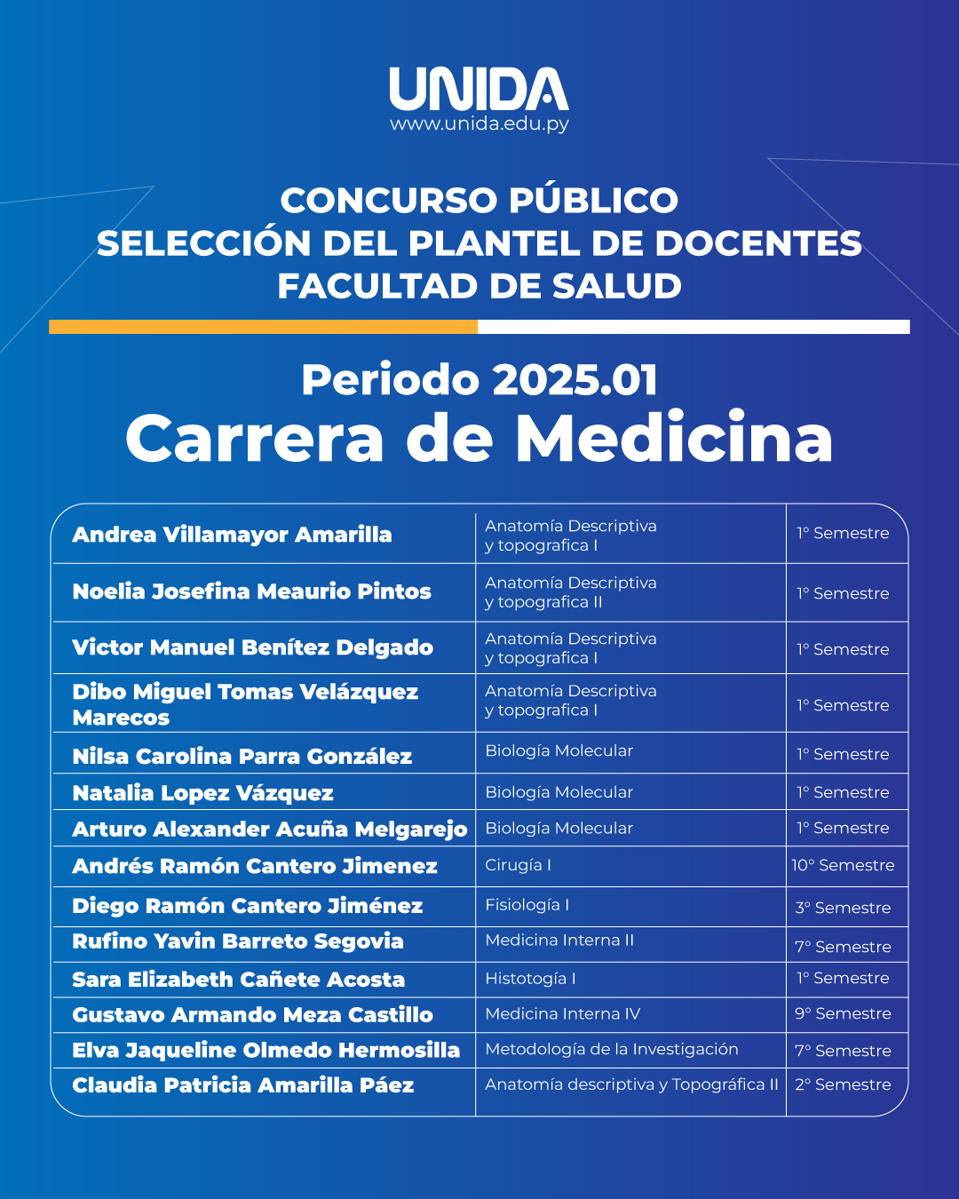 Docentes seleccionados del Concurso Público 2025